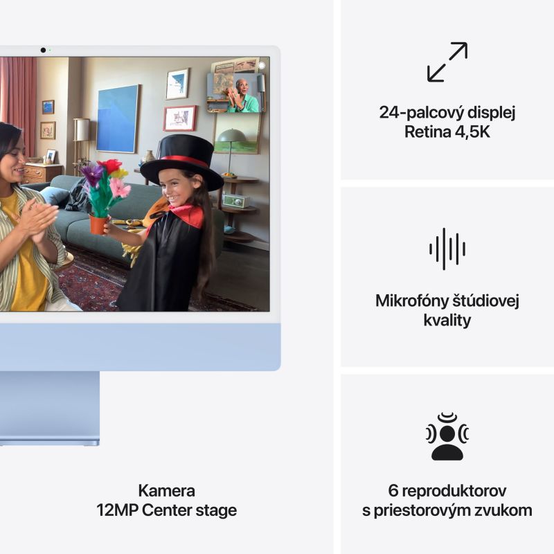 24ô Retina 4.5K displej s rozlíšením 4480x2520 pri 218 pixeloch na palec s podporou 1 miliardy farieb.